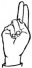 На ћирилици написано КАЋА ПОЛИЋ састоји се из 9 слова [?]. Исписано ћириличном једноручном азбуком за глувонеме:
